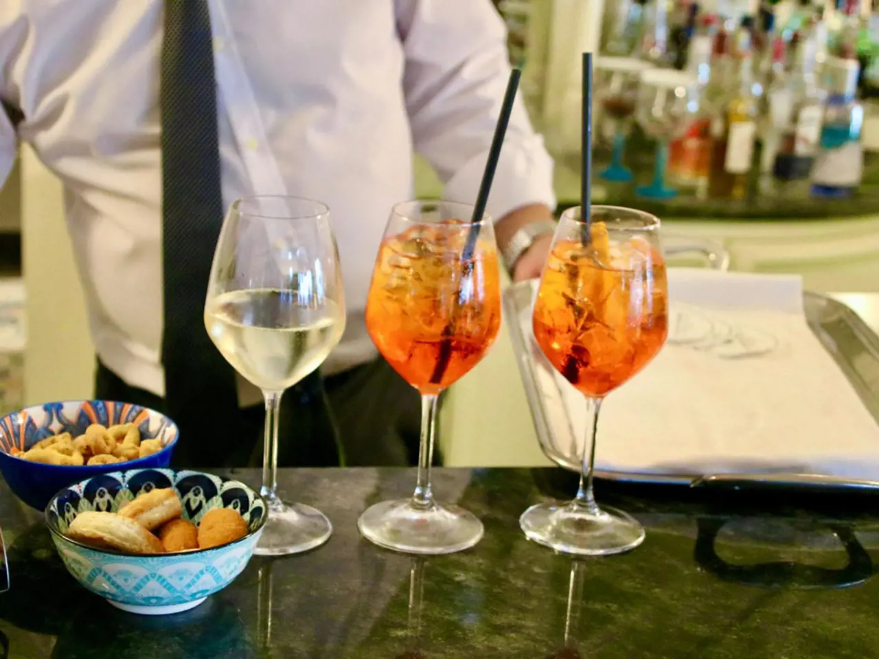 Dans un cadre exceptionnel surplombant la mer, nos hôtes peuvent déguster des cocktails élaborés par les barmen.
